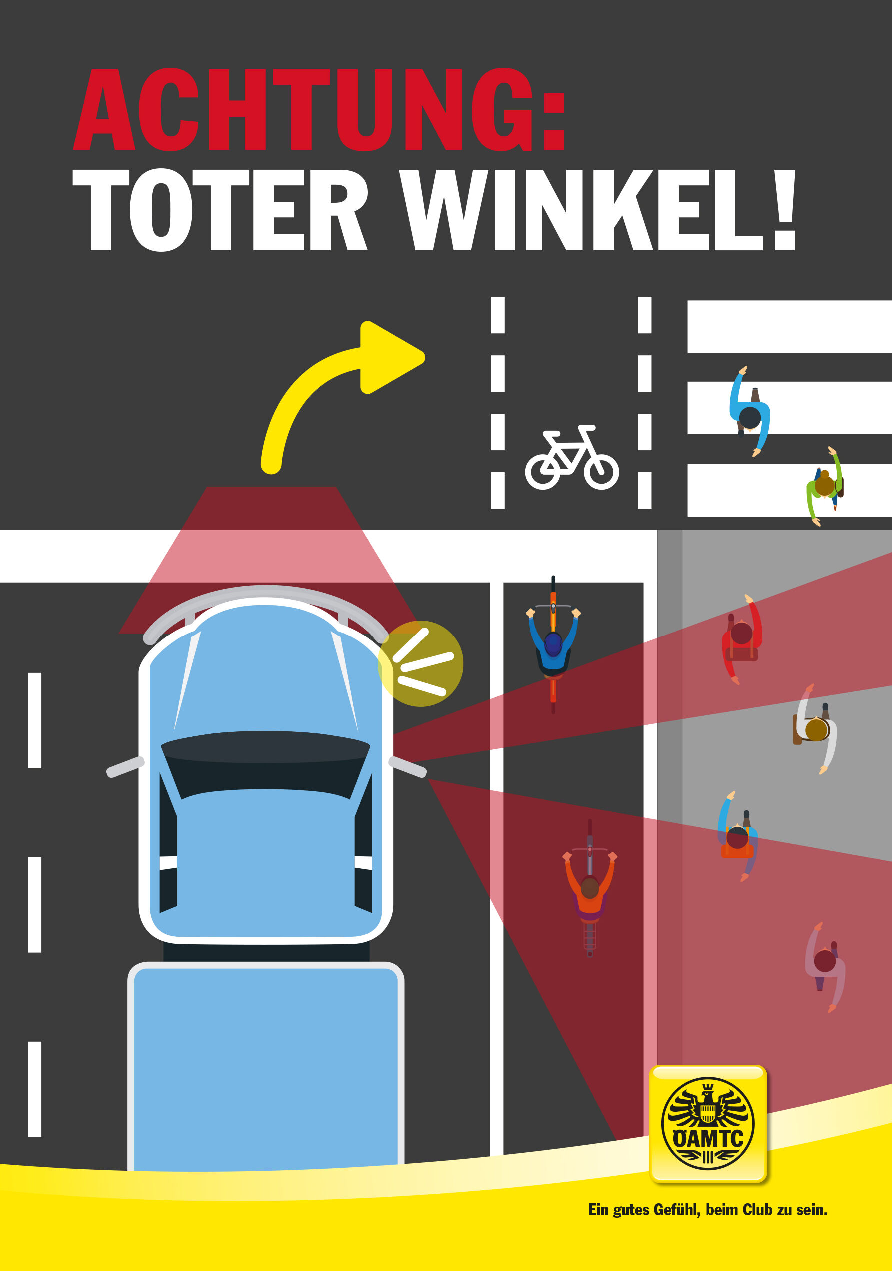 - Einerseits setzt sich der Mobilitätsclub dafür ein, dass Fahrradfahrer und Fußgänger darauf sensibilisiert werden, dass der Tote Winkel der gefährlichste Ort im Straßenverkehr ist.
