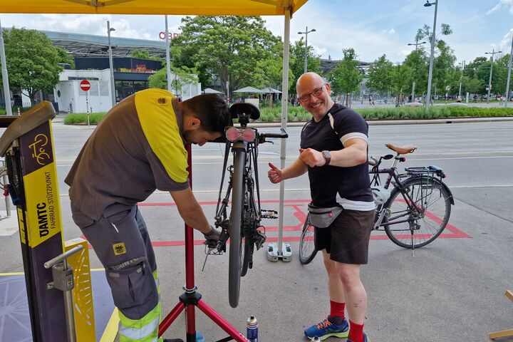 Die kostenlosen Fahrradchecks des ÖAMTC touren bereits durch die sechste Saison: Bei den PopUp Fahrrad-Stützpunkten servicieren Clubtechniker:innen kostenlos Fahrräder – egal ob Kinderfahrrad, Mountainbike, Renn- oder Faltrad – und informieren rund um das vielfältige ÖAMTC-Angebot für Radfahrende.
