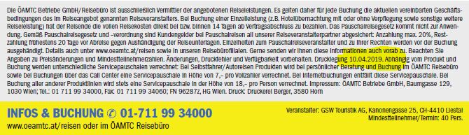 ÖAMTC Reisen: Wichtige Information zu aktuellem Folder