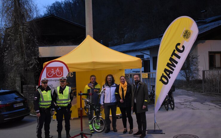 Im Rahmen der „Radlichtaktion“ werden Radfahrende in Salzburg bei Dämmerung und Dunkelheit von der Polizei aufgehalten, um die Beleuchtungsanlagen zu kontrollieren. Etwaige Mängel werden nach Möglichkeit an Ort und Stelle durch einen ÖAMTC Techniker repariert.