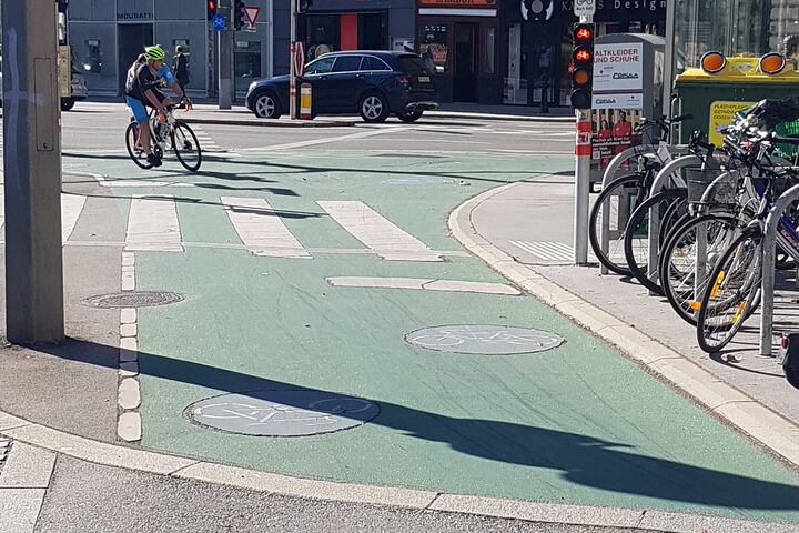 Rechts abbiegen bzw. geradeaus bei Rot als Neuerung in Österreichs StVO erregte im Vorjahr große Aufmerksamkeit. Ein Zusatzschild mit grünem Pfeil ermöglicht es seit Oktober 2022, das Radfahrende bei ausgewählten roten Ampeln rechtsabbiegen oder geradeaus fahren dürfen. Nach den rechtlichen Vorgaben in der StVO wurden auch technische Einsatzkriterien, als Teil der Richtlinien und Vorschriften für das Straßenwesen (RVS), erstellt.
