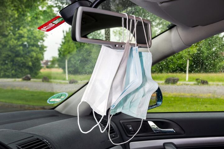 Maske nicht an Rückspiegel hängen, besser im Handschuhfach lagern