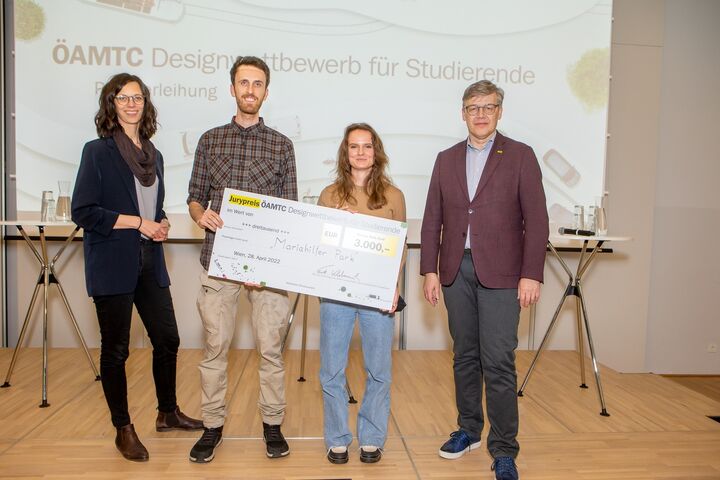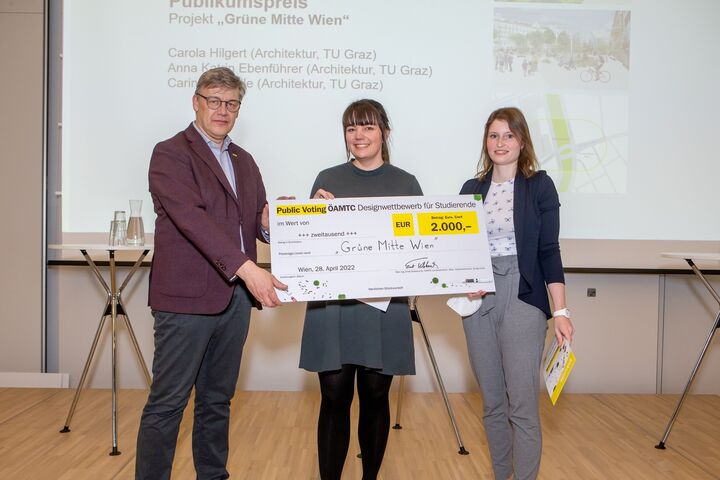 Die verschiedenen mobilen Bedürfnisse der Menschen in einer Metropole unter einen Hut zu bringen, ist eine komplexe Herausforderung. Insbesondere im Bereich der Verkehrsplanung und -organisation sind eine Vielzahl an Interessen, aber auch langfristige gesellschaftliche und verkehrspolitische Ziele zu berücksichtigen. Der ÖAMTC hatte Studierende eingeladen, im Zuge eines Designwettbewerb innovative Lösungen für einen von drei zentralen Verkehrsknotenpunkten in Wien zu entwickeln. Am Donnerstag, den 28. April, wurden im Mobilitätszentrum die Gewinnerteams prämiert. Der Wettbewerb war mit insgesamt 11.000 Euro dotiert: Der Jurypreis ging an die Projekte "Mariahilfer Park" (Location: Europaplatz), "Bruck'n Flow" (Location: Julius-Raab-Platz) und "Platz schaffen" (Location: Europaplatz). Im Zuge eines Public Votings wurde das Projekt "Grüne Mitte Wien" (Location: Europaplatz) zum Publikumsfavoriten gewählt.