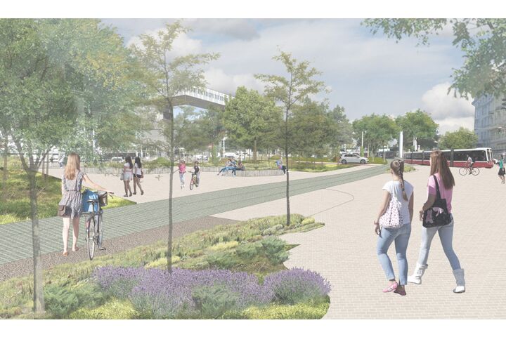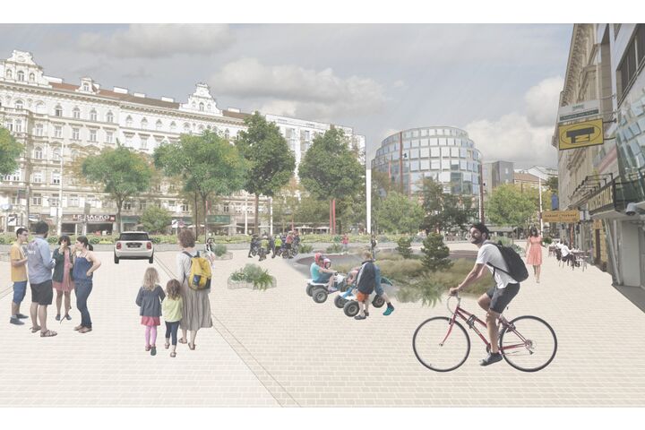 Das Projekt "Mariahilfer Park": Das Studierenden-Team hat eine Umgestaltung des Europaplatzes vorgenommen, mit der ein erkennbarer Mehrwert für alle Verkehrsteilnehmenden geschaffen wird. Angehörigen aller Mobilitätsgruppen wird hier eine zügige Fortbewegung ermöglicht. Gleichzeitig wird der öffentliche Raum zu einem attraktiven Aufenthaltsbereich aufgewertet, in dem ein sozialer Lebensraum mit Freizeitangebot und hoher Verweilqualität entsteht.