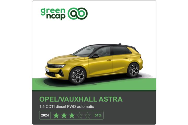 Dass auch Fahrzeuge mit Verbrennungsmotor immer schadstoffärmer und effizienter unterwegs sind, haben die Green NCAP-Untersuchungen im Laufe der Jahre gezeigt. Im aktuellen Test schafft der mit einem 1,5-Liter-Dieselmotor ausgestattete Opel Astra solide drei Sterne. ÖAMTC-Experte Lang dazu: "Diese Wertung spiegelt die Fortschritte in der Verbrenner-Technologie wider – speziell das hohe Niveau der Abgasnachbehandlung, die Schadstoffe und Partikel effektiv reduziert." Dennoch gibt es Verbesserungspotenzial, insbesondere bei Fahrten auf kürzeren Strecken. Und: Der Kraftstoffverbrauch sollte weiter optimiert werden, um die Gesamtbilanz des Fahrzeugs zu verbessern.