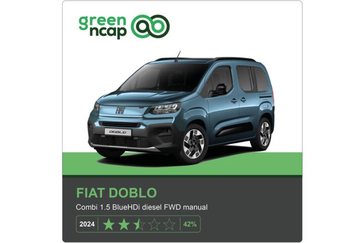 Der Fiat Doblo basiert auf einem Lieferwagen und ist seit über 20 Jahren auf dem Markt. Getestet wurde eine aktuelle Diesel-Variante, die – wie bei großen, schweren Verbrennern üblich – mit hohem Verbrauch und damit hohen CO2-Emissionen zu kämpfen hat. Positiv fällt hingegen das Schadstoffmanagement auf, das diese Emissionen weit unter den gesetzlichen Grenzwerten hält. Insgesamt schafft der Fiat Doblo 2,5 Sterne.