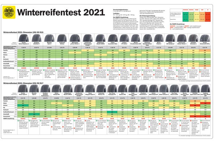 Im Winterreifentest 2021 haben der ÖAMTC und seine Partner 34 Modelle der Mittelklasse-Dimensionen 195/65 R15 91T sowie 225/50 R17 94V in Hinblick auf ihre Fahr- und Sicherheitseigenschaften getestet. Und auch Komfort und Wirtschaftlichkeit wurden wieder unter die Lupe genommen. ÖAMTC-Techniker Steffan Kerbl fasst die Ergebnisse zusammen: "Sieben Winterreifen wurden mit 'sehr empfehlenswert' beurteilt. Mit jedem dieser Modelle erhält man einen ausgewogenen Reifen ohne große Schwachstellen." Der Großteil der heuer getesteten Produkte (24) schnitt mit der Note "empfehlenswert" ab, eines mit "bedingt empfehlenswert" – und für zwei Reifen kann der ÖAMTC keine Empfehlung aussprechen. "Einen Winterreifen zu finden, der Sicherheit und Fahrkomfort bietet und gleichzeitig beim Spritsparen hilft, sollte 2021 also kein großes Problem sein", sagt Kerbl. Detailergebnisse sind auch unter www.oeamtc.at/tests zu finden.