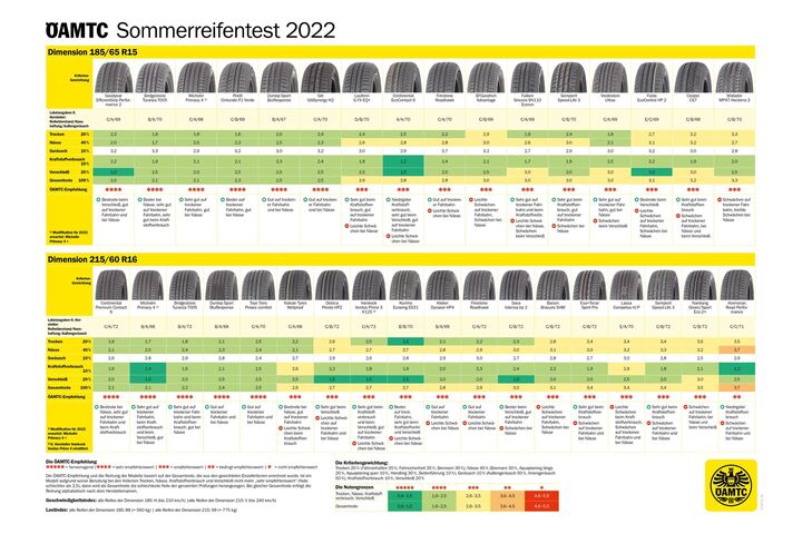 Alle Ergebnisse im Detail unter www.oeamtc.at/tests/reifentest/sommerreifentest-2022.