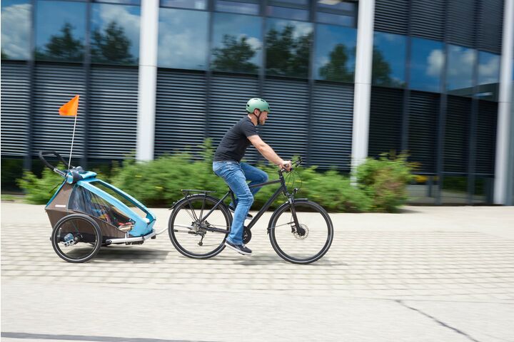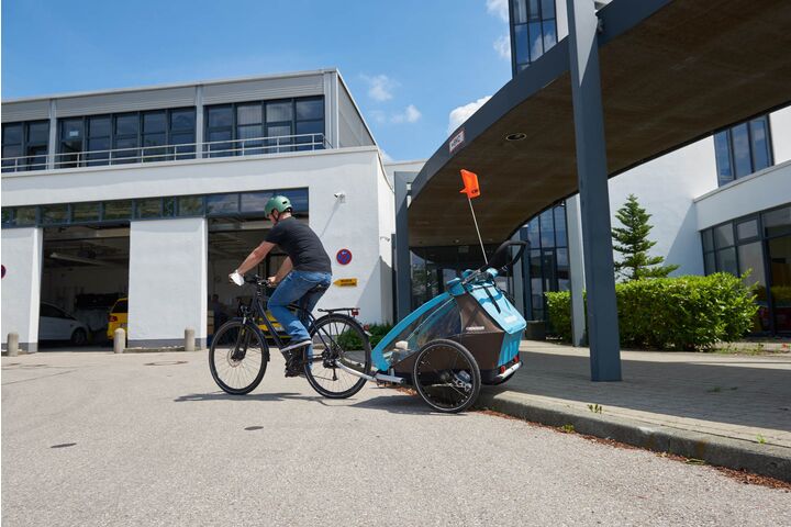 - Fahrradanhänger: Wenn jemand einen Allrounder sucht, wird er hier am ehesten fündig. Das System bietet guten Stand, sehr gutes Fahrverhalten, sein Metallrahmen schützt beim Crash, die Rückhaltesysteme erfüllen ihren Zweck, die Insassen sind vor Wind und Wetter geschützt – und die Flexibilität ist generell sehr hoch. Ein Nachteil ist die geringe Höhe, wodurch das Gefährt trotz Signalfahne im Straßenverkehr leicht übersehen werden kann. Die niedrige Lage sorgt auch für erhöhte Belastungen bei einem Zusammenstoß mit einem Auto, zumindest rutscht der Anhänger danach aber nicht weit, was die Gefahr eines sekundären Aufpralls deutlich reduziert. Achtung: Man sollte unbedingt einen gefederten und damit deutlich komfortableren Anhänger wählen.