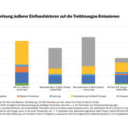 * Äußere Faktoren wie der Fahrstil und Witterungsbedingungen haben mitunter starken Einfluss auf die THG-Emissionen. Doch auch hier gibt es Unterschiede zwischen den Antriebsarten: Während es beim Verbrennungsmotor einen vergleichsweise geringen Unterschied macht, wie kalt oder warm die Umgebungstemperatur ist, kann ein Elektro-Auto doppelt so viel Energie brauchen, wenn die Temperatur unter den Gefrierpunkt fällt. Besonders signifikant sind die Unterschiede beim Plug-in Hybrid: Beim VW Golf GTE verachtfachen sich beispielsweise die Emissionen im Fahrbetrieb bei kalter Witterung und mit leerem Akku im Vergleich zu sparsamer Fahrt bei angenehmen Außentemperaturen und voll geladener Hybrid-Batterie.