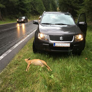Nach einem Wildunfall Unfallstelle absichern, Polizei verständigen