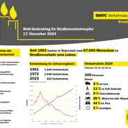 Am dritten Sonntag im November wird auf Initiative der Vereinten Nationen seit 1995 jährlich jener Menschen gedacht, die im Straßenverkehr tödlich verunglückten. Heuer fällt dieser Gedenktag auf den 17. November - und er hat leider nach wie vor nichts von seiner Relevanz eingebüßt: Laut WHO-Schätzungen sterben weltweit rund 1,3 Millionen Menschen pro Jahr bei Verkehrsunfällen.