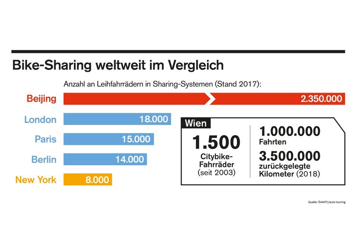 ÖAMTC: Bike-Sharing – weltweit 10 Millionen Leihräder unterwegs
