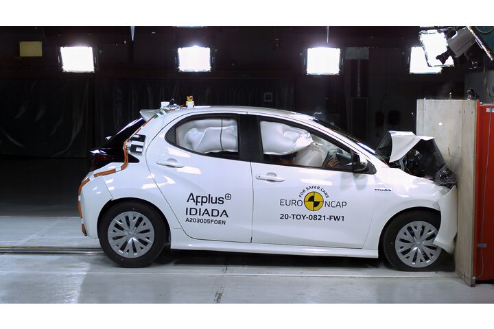 - Toyota Yaris: Kleinwagen wie der Yaris blieben in früheren Zeiten in Sachen Verkehrssicherheit deutlich hinter größeren Fahrzeugen zurück. Mittlerweile hat sich das – zumindest in diesem Fall – geändert: Der Yaris verfügt beispielsweise über Airbags zwischen den Frontsitzen, die verhindern, dass Passagiere bei einem Seitencrash gegeneinanderprallen. Freilich gibt es durch die kompakte Bauweise auch gewisse Nachteile: Beim Frontcrash zeigte sich, dass sowohl Oberschenkel des Fahrers als auch des Beifahrers auf das Armaturenbrett treffen, was Verletzungen nach sich ziehen kann. Dem Fahrer drohen im Übrigen im relativ engen Fußbereich schwere Verletzungen durch die Pedale und auch der Brustkorb ist trotz Airbag verletzungsgefährdet. Besser ist es also im Allgemeinen, wenn das Auto einen Aufprall selbständig vermeiden kann – und am Beispiel des Yaris zeigt sich, dass auch bei kleineren und günstigeren Fahrzeugen nicht zwingend darauf verzichtet werden muss: Das automatische Notbremssystem konnte im Test z. B. einen Zusammenstoß mit dem Gegenverkehr verhindern.