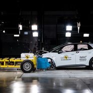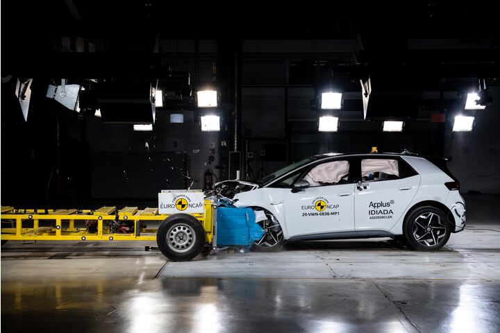 - VW ID.3: Der ID.3 ist ein kompaktes Elektroauto und – wie der Yaris – sehr sicher für seine Insassen. Auch hier verhindert z. B. der mittlere Airbag, dass zwei vorne Sitzende gegeneinanderprallen. Befindet sich allerdings der Fahrer allein im Auto, verhindert dieser Airbag nicht, dass er beim Seitenaufprall unter Umständen mit dem Kopf gegen die Beifahrertür schlägt. Beim Frontcrash gibt es hingegen wenig zu bemängeln, Verletzungsgefahr besteht für den Fahrer im Brustbereich. Beim Fußgängerschutz gibt es, wie bei praktisch jedem Auto das Problem zu harter A-Säulen, die bei einer Kollision schwere Verletzungen verursachen. Außerdem: Der id3 verfügt über ein Notbremssystem mit Fußgängererkennung, das in den meisten Situationen funktioniert – nur beim Abbiegen an einer Kreuzung wurde ein querender Fußgänger nicht erkannt. Hier hat das System im Toyota Yaris die Nase vorn.