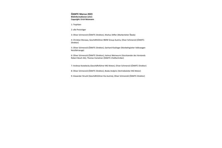Wien - Im März 2023 wurde zum 11. Mal der österreichische Automobilpreis Marcus vergeben. 46 Automodelle, die 2022 auf den heimischen Markt gekommen sind, wurden dafür von ÖAMTC-Fachleuten geprüft und bewertet. Ziel des Marcus ist es, jene Eigenschaften auszuzeichnen, die Autokäufer:innen am wichtigsten sind. "Interessierte stehen vor einer immer größer werdenden Vielfalt an Antriebs- und Ausstattungskonzepten. Gerade in wirtschaftlich herausfordernden Zeiten bietet der Marcus mit einer transparenten und objektiven Bewertung eine gute Orientierung", betont ÖAMTC-Direktor Oliver Schmerold.