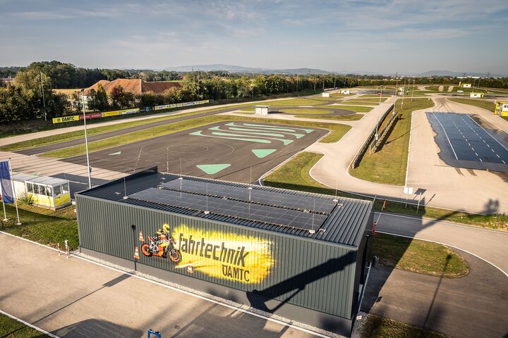 Für einen nachhaltigen Umgang mit Umwelt und Ressourcen investiert die ÖAMTC Fahrtechnik laufend in den Ausbau von Photovoltaikanlagen und E-Ladesäulen.