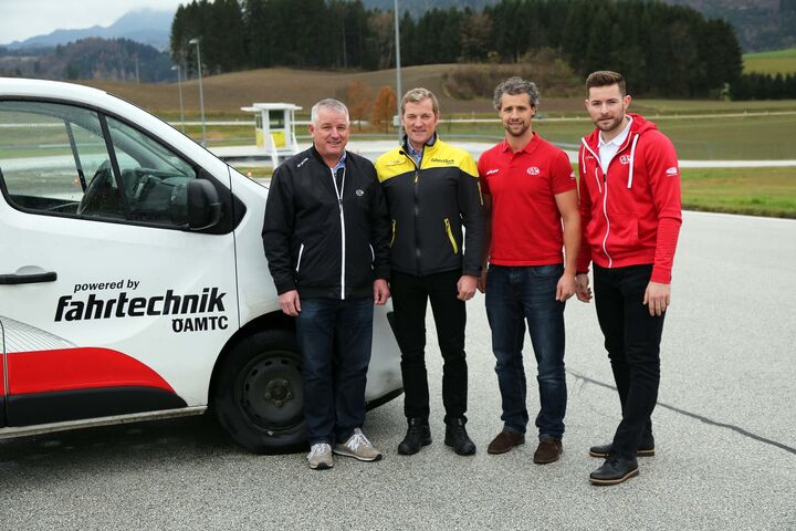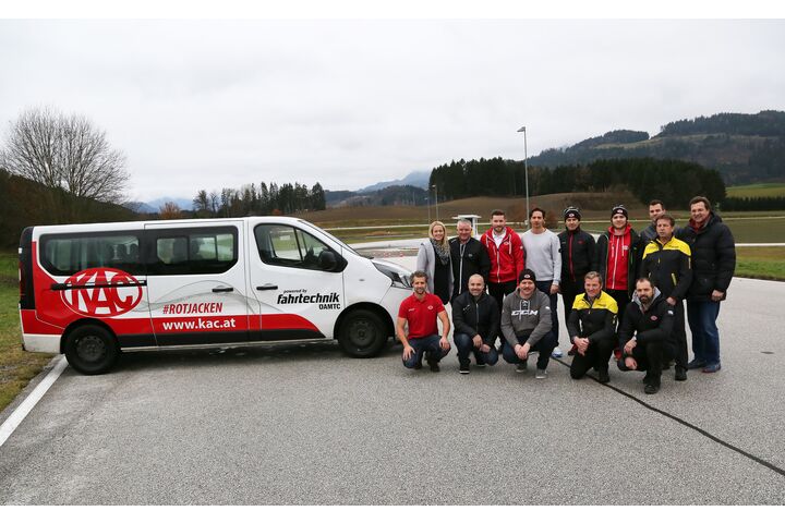 Über 300 Kinder und Jugendliche spielen im Nachwuchs des Eishockey-Rekordmeisters EC-KAC aus Klagenfurt. Die Junioren bestreiten im Verlauf einer Saison hunderte Spiele in ganz Österreich sowie angrenzenden Staaten. Weil die Reisen zu den Auswärtspartien teilweise in den vereinseigenen Kleinbussen absolviert werden, spielt das Thema Verkehrssicherheit bei den „Rotjacken“ eine ganz besonders wichtige Rolle – Grund genug, das Eis gegen die asphaltierten Pisten der ÖAMTC Fahrtechnik einzutauschen: Am 25. November 2019 absolvierten Betreuer und Trainer des KAC-Nachwuchsteams ein umfangreiches Pkw-Training im ÖAMTC Fahrtechnik Zentrum in St. Veit an der Glan. "Die Sicherheit unseres Nachwuchses auf Österreichs Straßen ist uns ein großes Anliegen. Daher war es uns ein Bedürfnis, unsere Trainer und Betreuer in Sachen Fahrsicherheit hinter dem Steuer unserer neuen Kleinbusse trainieren zu lassen. Schließlich legen wir pro Jahr zigtausende Straßenkilometer zurück, viele davon im Winter und in der gefährlichen Übergangszeit", erklärt Nachwuchsleiter Johannes Reichel, der selbst – ebenso wie Profispieler Christoph Duller und ex-Spieler und Betreuer Hans Sulzer – am Fahrsicherheitstraining teilnahm.