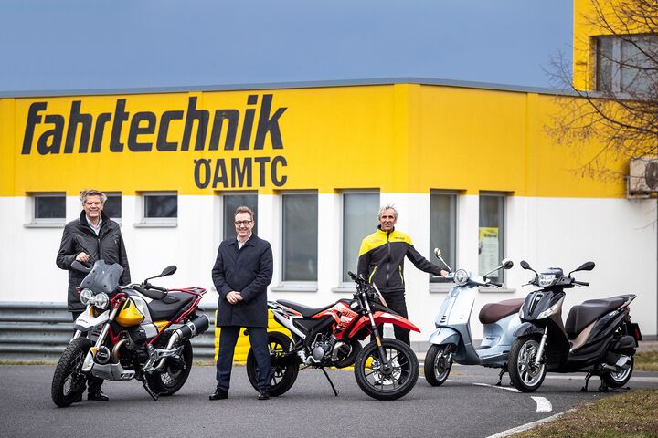 Der österreichische Generalimporteur Faber stattet die acht ÖAMTC Fahrtechnik Zentren in ganz Österreich mit einem zusätzlichen Zweirad-Fuhrpark aus: Ab sofort können Teilnehmer auch auf aktuellen Vespa, Piaggio und Moto Guzzi Modellen trainieren – wer kein eigenes Fahrzeug besitzt, kann Trainingsmodule mit einem der Leihfahrzeuge absolvieren. Die Bikes und Roller werden von den Instruktoren der ÖAMTC Fahrtechnik als Vorausfahrzeuge und zur Demonstration des korrekten Fahrverhaltens eingesetzt. Kürzlich wurde der Fuhrpark an die Zentren übergeben. "Pünktlich zum Zweirad-Saisonstart können sich unsere Kursteilnehmer in den Fahrtechnik Zentren mit neuen Modellen auf die Saison vorbereiten oder die Zusatzausbildung für den Code-111 absolvieren. Wir freuen uns, mit der Firma Faber, als Importeur dieser italienischen Kultzweiräder, zusammenzuarbeiten und dem Trend zum Zweirad damit zu entsprechen", so Martin Studener, Geschäftsführer der ÖAMTC Fahrtechnik.