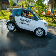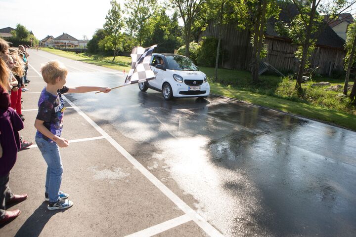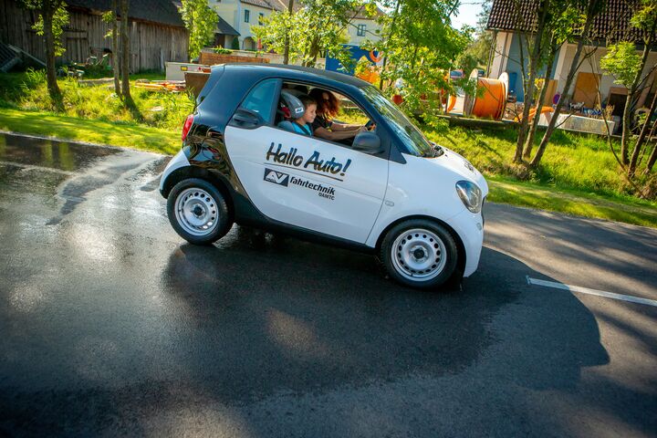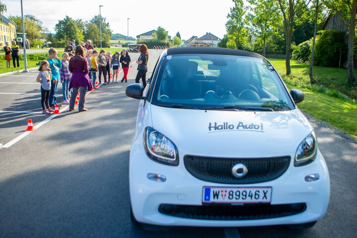 "Hallo Auto" führt 8 bis 9-jährigen Volksschülern vor Augen, wie lange ein Fahrzeug braucht, bis es zum Stillstand kommt und welche Faktoren dabei mitspielen. Die Kinder erkennen, dass es eine gewisse Zeit dauert, bis ein Autofahrer Gefahren wahrnimmt, reagiert und bremst. Damit sie hautnah erleben, wie lange es dauert, bis ein Auto steht, dürfen sie ein mit einem zweiten Bremspedal ausgerüstetes Auto selbst abbremsen.