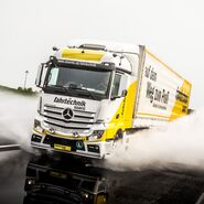 In einem praxisorientierten Fahrsicherheitstraining mit dem eigenen Lkw lernt der Fahrer seine persönlichen Grenzen kennen und erlebt, inwiefern sich die Fahrgeschwindigkeit auf die Dynamik des Fahrzeuges auswirkt. Lkw und Fahrer sollten gemeinsam mit den Assistenz- und Sicherheitssystemen an Bord eine Einheit bilden. Gezieltes Training sensibilisiert den Lkw-Fahrer für brenzlige Situationen.