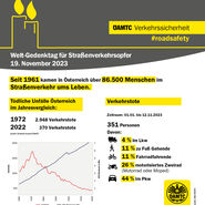 Verkehrsunfälle sind global die zwölfthäufigste Todesursache: Laut WHO-Schätzungen sterben jährlich weltweit immer noch fast 1,3 Millionen Menschen an den Folgen von Unfällen im Straßenverkehr. Seit 1961 sind in Österreich 86.500 Menschen bei Verkehrsunfällen ums Leben gekommen, 2023 waren bereits 351 Verkehrstote zu beklagen (1. Jänner bis 12. November 2023; Quelle: Statistik Austria).