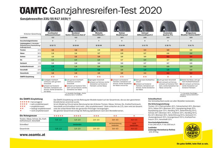 Alle Details und die weiteren Reifentests des Mobilitätsclubs findet man unter www.oeamtc.at/tests.