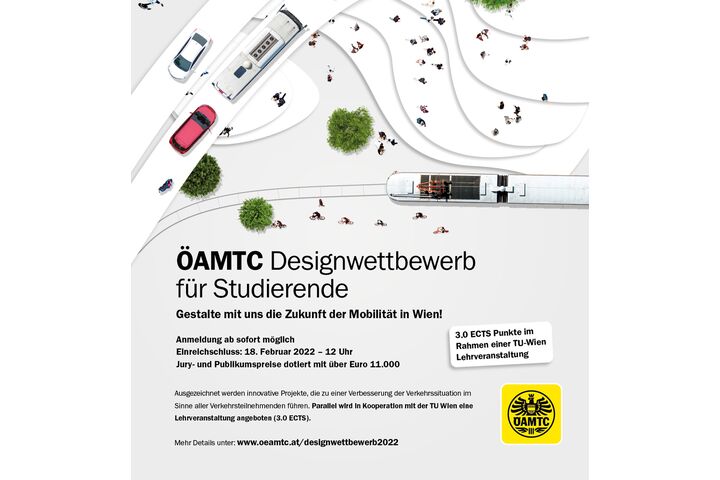 Urbane Mobilität ist vielfältig und unterliegt einem stetigen Wandel. Im Bereich der Verkehrsplanung und -organisation sind eine Vielzahl an Interessen sowie langfristige gesellschaftliche und verkehrspolitische Ziele zu berücksichtigen. Der Mobilitätsclub möchte mit einem Designwettbewerb angehende Akademiker:innen einladen, innovative Lösungen für einen von drei Verkehrsknotenpunkten in Österreichs Hauptstadt zu entwickeln. Der ÖAMTC-Designwettbewerb richtet sich an alle Studierenden entsprechender Fachrichtungen (TU, BOKU, Universität für angewandte Kunst und vergleichbaren Hochschulen) und ist mit insgesamt 11.000 Euro dotiert.