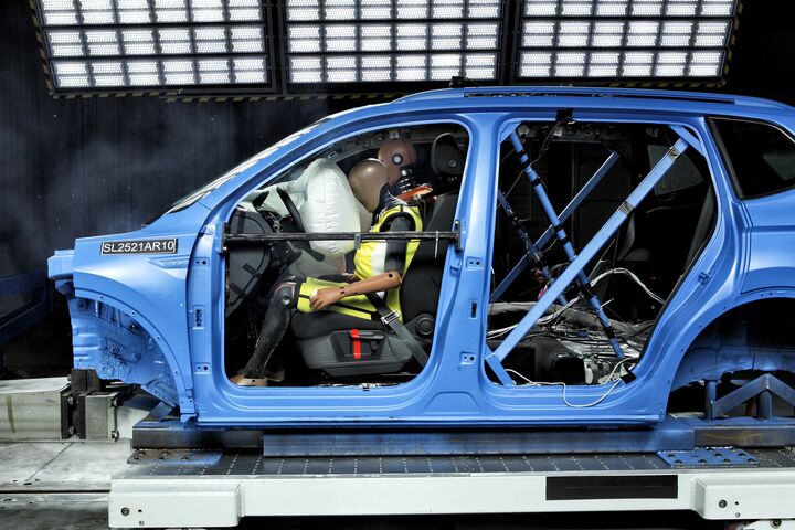 Anders sieht es bei großen (101 kg, 193 cm) und schweren (125 kg, 175 cm) Insassen aus: Die Dummies waren im Test nur durch konventionelle Gurte und Airbags ausreichend geschützt. "Die verwendeten adaptiven Sicherheitssysteme könnten im Ernstfall beide aufgrund des höheren Gewichts mit großer Wahrscheinlichkeit nicht ausreichend zurückhalten", stellt Nosé klar. "Zudem haben sehr schwere Insassen ein erhöhtes Risiko, dass der Effekt des Submarining auftritt: Aufgrund des höheren Bauchumfangs kann der Beckengurt den Insassen nicht mehr optimal am Becken zurückhalten und rutscht in den Bauchraum, wo er schwere innere Verletzungen verursachen kann." Aber auch wenn der 3-Punkt-Sicherheitsgurt mit Gurtstraffer und Gurtkraftbegrenzer ein erhöhtes Verletzungsrisiko bei dieser Personengruppe birgt, ist die starke Rückhaltung notwendig, damit ein Zusammenstoß mit Fahrzeugkomponenten verhindert wird – denn ein Aufprall am Lenkrad oder anderen Fahrzeugkomponenten könnten deutlich schwerere Verletzungen verursachen.