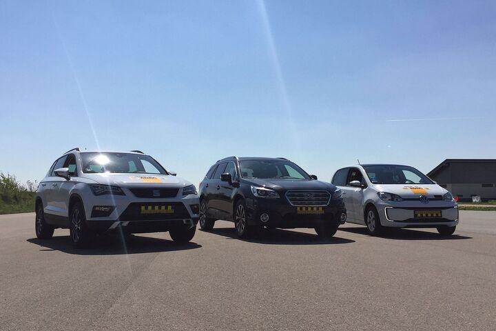 Der Seat Ateca verwendet Radar, der Subaru Outback verfügt über eine optische Stereo-Kamera und der VW up! ist mit LiDAR-Sensor (Light Detection And Ranging) ausgestattet.