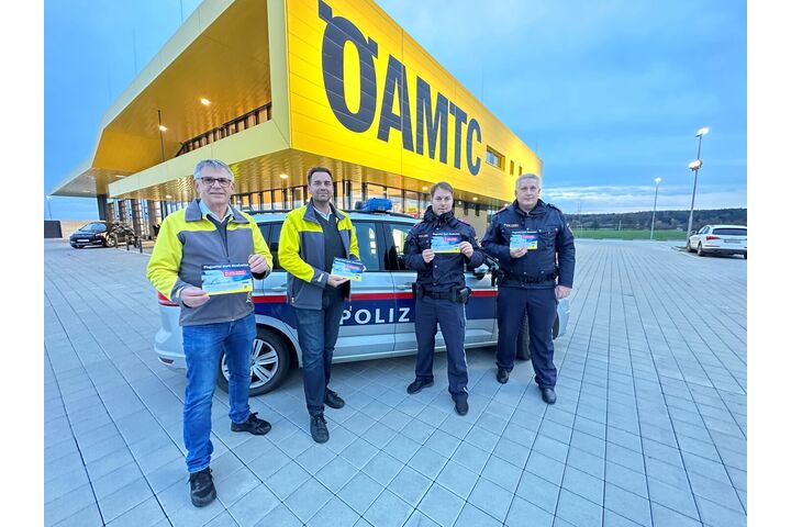 Neusiedl: V.l.n.r. – Inspektorin Lisa Kerschbaum (Polizei), Denise Auer (ÖAMTC), Michael Schüller (ÖAMTC), RI Manuel Peck (Polizei)
