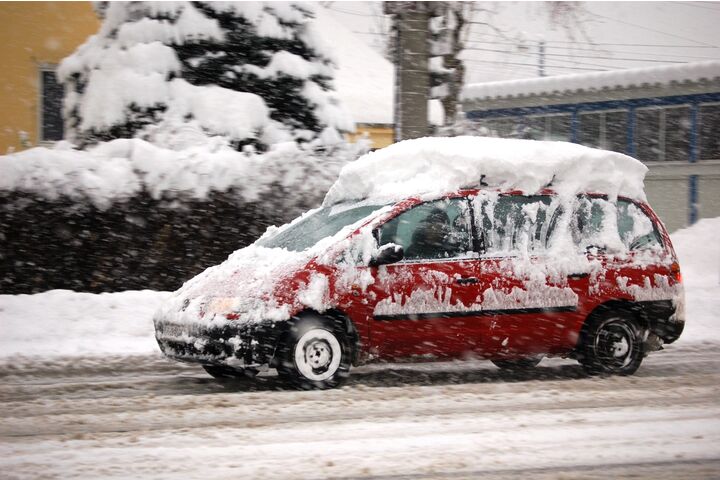Schnee am Autodach, mangelhaftes Freikratzen der Scheiben oder laufender Motor können unangenehme Folgen haben