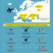 Fällt ein gebuchter Flug aus, hat man als Passagier die Wahl zwischen der Erstattung des Ticketpreises oder einer Ersatzbeförderung (d. h. andere Beförderung zum Ziel oder frühestmöglicher Rückflug zum ersten Abflugort). "Eine pauschale Entschädigung muss die Fluglinie dann bezahlen, wenn der Passagier nicht mindestens zwei Wochen vor dem geplanten Abflug über die Annullierung informiert wurde", weiß ÖAMTC-Experte Authried. "Aber auch wenn zwei Wochen unterschritten wurden, besteht noch kein Anspruch auf Entschädigung – sofern ein alternativer Flug angeboten wird und dabei bestimmte Zeitrahmen bei Abflug und Ankunft eingehalten werden: So muss die Airline bei Benachrichtigung innerhalb von weniger als sieben Tagen vor Abflug keinen pauschalen Ersatz leisten, wenn ein neuer Flug angeboten wird, der maximal eine Stunde früher abfliegt und maximal zwei Stunden später ankommt."