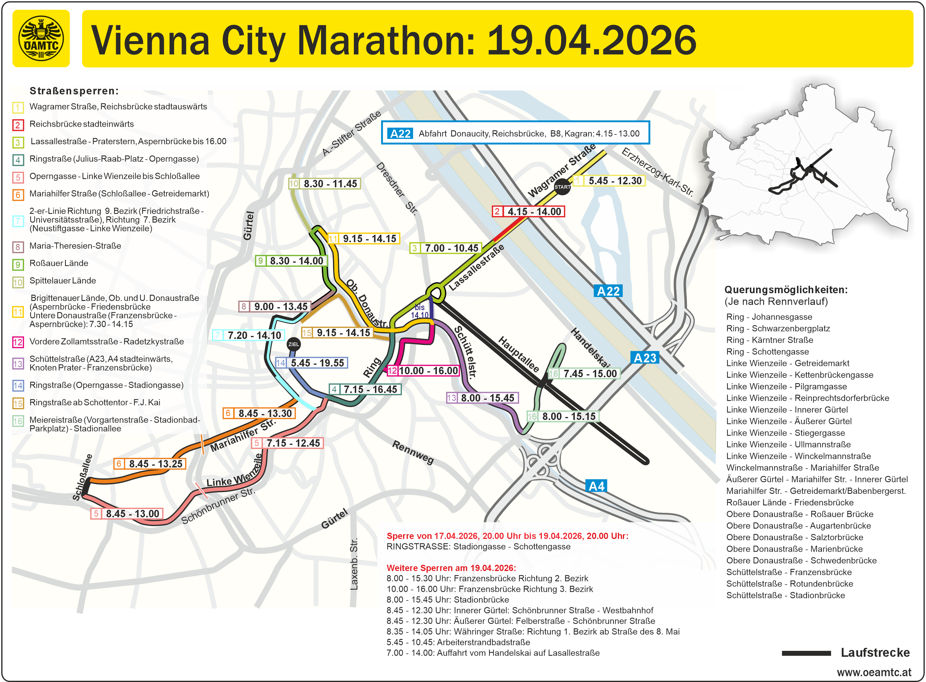 Als Mobilitätspartner des Vienna City Marathons hat der Club auch heuer wieder ein umfangreiches Paket geschnürt. Angefangen von Verkehrsinformationen, über die Verkehrs-Hotline, bis zu unserer Fanzone am Schubertring.