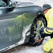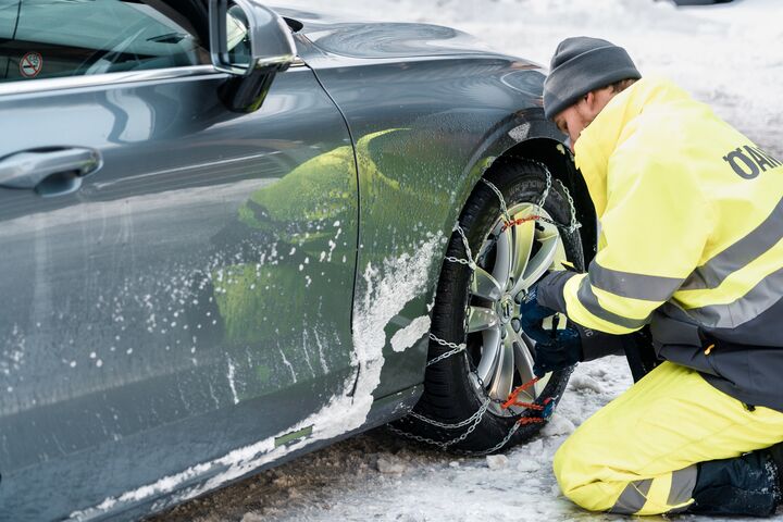 - Montage: Da Schneeketten erst unter schwierigen Witterungsverhältnissen zum Einsatz kommen, sollte man das Anlegen vor der Abfahrt üben. "Wenn die Kettenmontage im Ernstfall eine Premiere ist, können leicht Fehler passieren. Schäden an Kette und Fahrzeug können die Folge sein", warnt der ÖAMTC-Techniker. "Keinesfalls sollte man im freien Gelände den Wagenheber einsetzen, um die Ketten leichter am angehobenen Fahrzeug montieren zu können. Was in der heimischen Garage noch bequem ist, birgt im Ernstfall große Verletzungsgefahr."