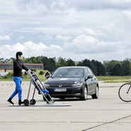 In drei Fahrszenarien wurden Assistenzsysteme auf die Probe gestellt. Um die Kundenakzeptanz zu testen, wurde der Notfall-Spurhalteassistent in eine Baustelle geschickt: Pylonen markierten eine Fahrspur, mittig lief eine Fahrbahnmarkierung. Der Notfall-Spurhalteassistent versuchte, das Fahrzeug durch Lenkeingriffe und Warnungen innerhalb der ursprünglichen Fahrspur zu halten. "Das System kann aber übersteuert werden. Nur wer das weiß, rechnet damit und reagiert richtig", so Nosé.