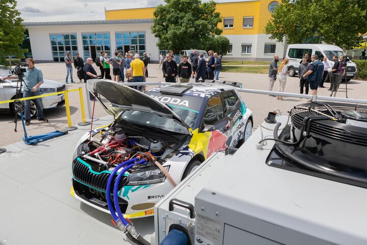 Eines Konzeptes bedarf es aber nicht nur für den Wettbewerb. Auch rundum waren Regelungen für die Veranstaltungen notwendig – vom Sicherheitskonzept für alle Beteiligten über Ausbildungen in Hochvolt-Technik wie auch für das Laden der E-Fahrzeuge. Für letzteres entwickelten die Teams eigene Ladestationen: Stohls elektrischer Citroën C3 wird auf den Verbindungs-Etappen aus einem Lade-Van mit 350 KW in maximal sieben bis acht Minuten geladen. Baumschlagers Škoda Fabia wird mobil wie auch per Power Charger im Service geladen.