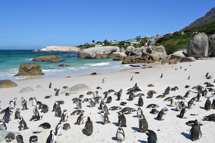 Ein malerischer Sandstrand nahe Kapstadt, den man sich mit einer Pinguin-Kolonie teilt. Was den Ort schon zu etwas ganz Besonderem macht.