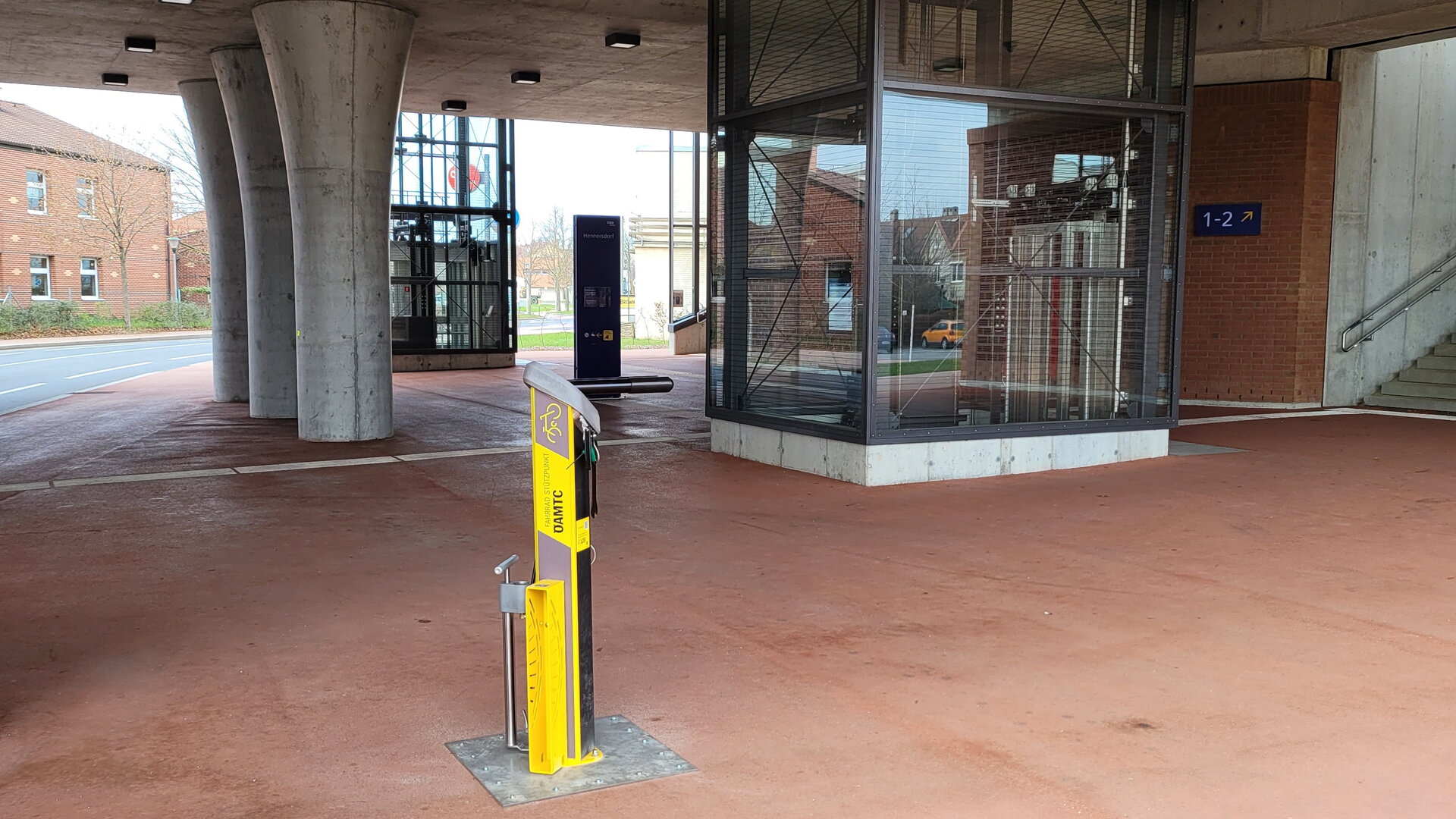 Die ÖAMTC Fahrrad-Station, auf dem kleinen Vorplatz vom Kindergarten (+ Musikschule) links bei den …