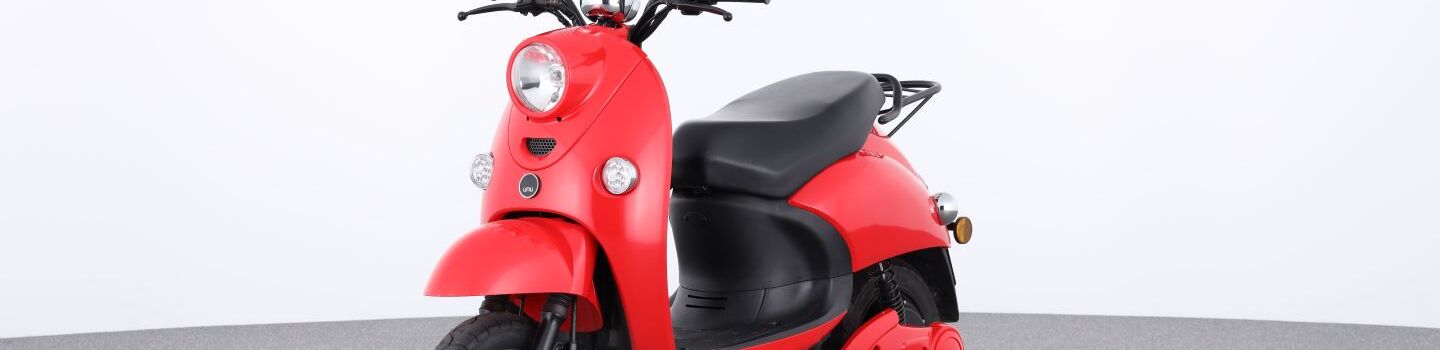 Der Scooter Classic des Berliner Unternehmens unu ist der kleinste und leichteste Roller im Test. Während sich das Gewicht positiv besonders beim Rangieren bemerkbar macht, haben die kompakten Abmessungen, die den Roller im engen Stadtgewusel besonders handlich machen, auch Nachteile. Für Personen größer als 1,80 m ist der unu schlicht zu klein. Die Sitzposition ist besonders bei länger andauernden Fahrten unbequem, großgewachsene Fahrer stoßen zudem mit den Beinen an den Lenker und können nicht voll einschlagen. Dies ist umso ärgerlicher, da der unu ohnehin mit dem größten Wendekreis auffällt. Weitere Patzer erlaubt er sich mit seiner schwachen und schlecht dosierbaren Bremse, der billigen Anmutung und den spärlichen Fahrinfos – nicht einmal eine Reichweitenanzeige hat der E-Roller zu bieten. Punkten kann der im Retrolook designte Stromer mit seinem Batteriesystem. Ab Werk befindet sich im Fach unter der Sitzbank ein herausnehmbarer Akku, gegen Aufpreis ist ein weiterer erhältlich.
