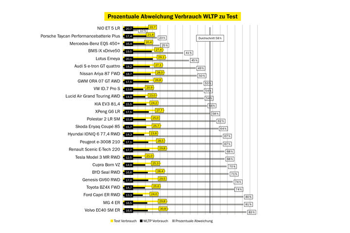 “Genügend” gab es hingegen mehrere, wie Christian Klejna erklärt: “Bei einigen Fahrzeugen war der Verbrauch mit rund 30 kWh/100 km so hoch, dass auf der simulierten Teststrecke dreimal nachgeladen werden musste, um das Ziel zu erreichen. In diese Kategorie fallen u. a. der Volvo EC40 SM ER, der Peugeot e-3008 Version 210 und – als Schlusslicht – der MG 4 ER, bei dem vor allem die Schwächen im Heizsystem den Verbrauch hochtreiben.”