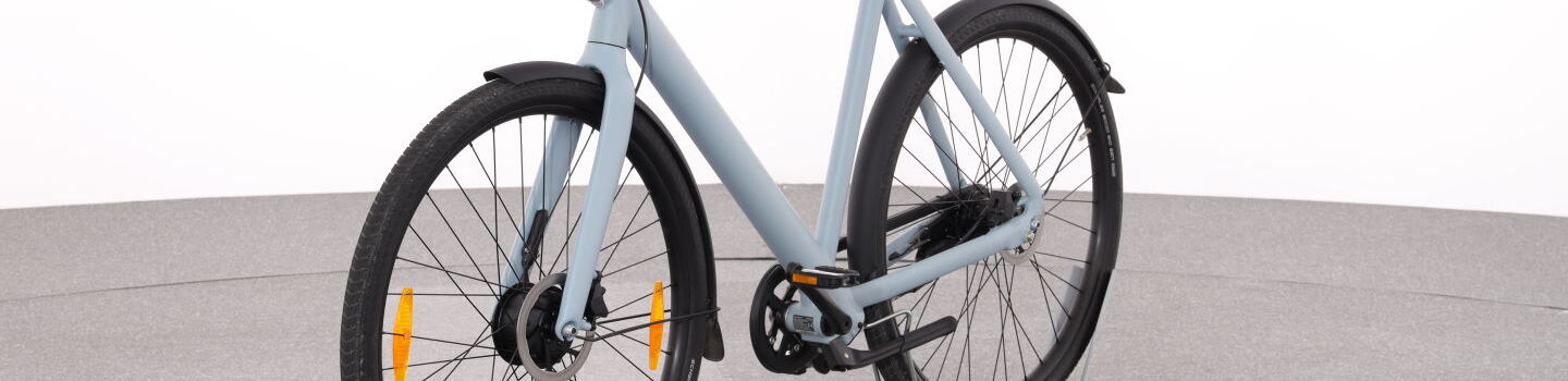 Auffallend im Design und mit technischen Gimmicks wie der über die App einstellbaren Klingel. Das VanMoof ist ein stabiles Rad für die Ebene. Die vier Unterstützungsstufen sind an Geschwindigkeiten geknüpft, so dass unweigerlich wohl stets mit der vierten, d.h. bis 25 km/h gefahren wird. Mit über 21 Kilogramm ist das Rad das schwerstes im Test. Den Adapter zum Ausbau der Laufräder sollte im Falle einer Reparatur des Rades dabei sein, sonst kann das Rad nicht ausgebaut werden. Größte Schwäche im Test ist die automatisierte Schaltung. Ein Knacken bis hin zu Schaltausfällen bei innerstädtischen Anstiegen zeugt nicht von Langlebigkeit. Das kurze Durchfallen bei den Schaltvorgängen ist keine Seltenheit und kann zu gefährlichen Fahrsituationen, z.B. beim Abbiegen führen.