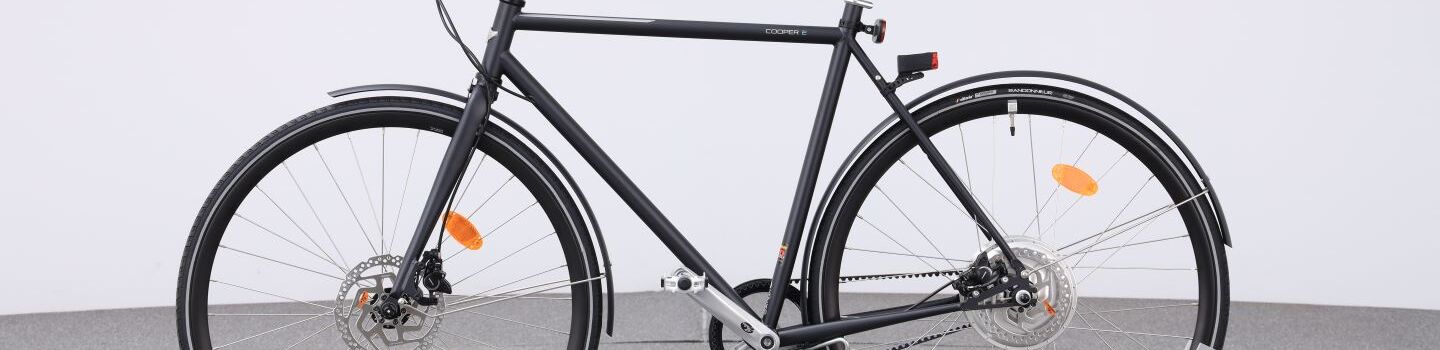 Rad im Retro-Look mit Schutzblechen und großem Heck-Nabenmotor, in dem auch der Akku integriert ist. Der Motor spricht spät an, was das Anfahren - vor allem bergauf - schwierig macht. Das Umschalten der Unterstützungsstufen erfolgt nur über die Bitride App, wo auch individualisiert werden kann.
