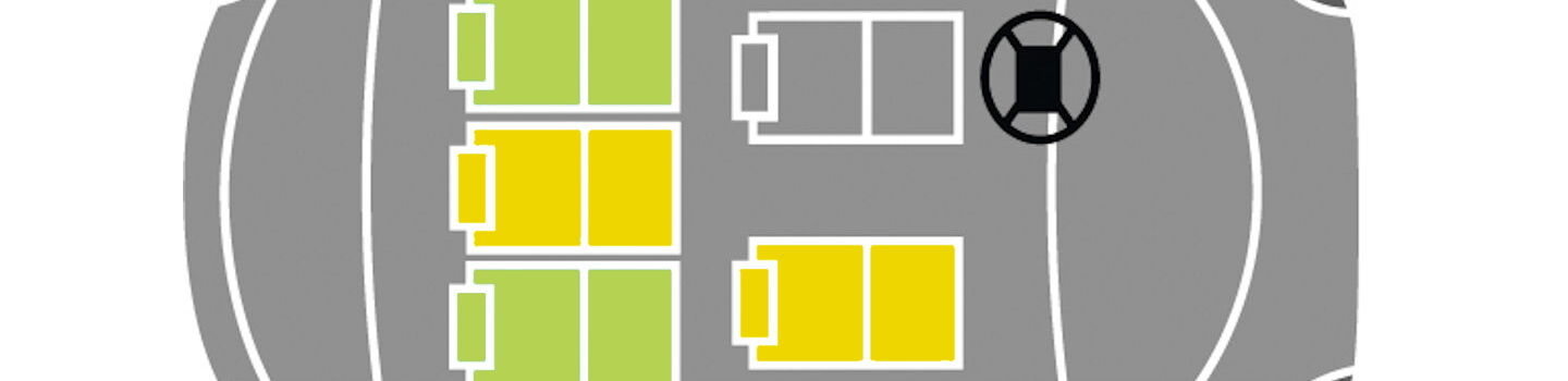 Mittlerer Sitzplatz 2. Reihe bietet nur für Sitzerhöher ohne Rückenlehne genügend Platz.