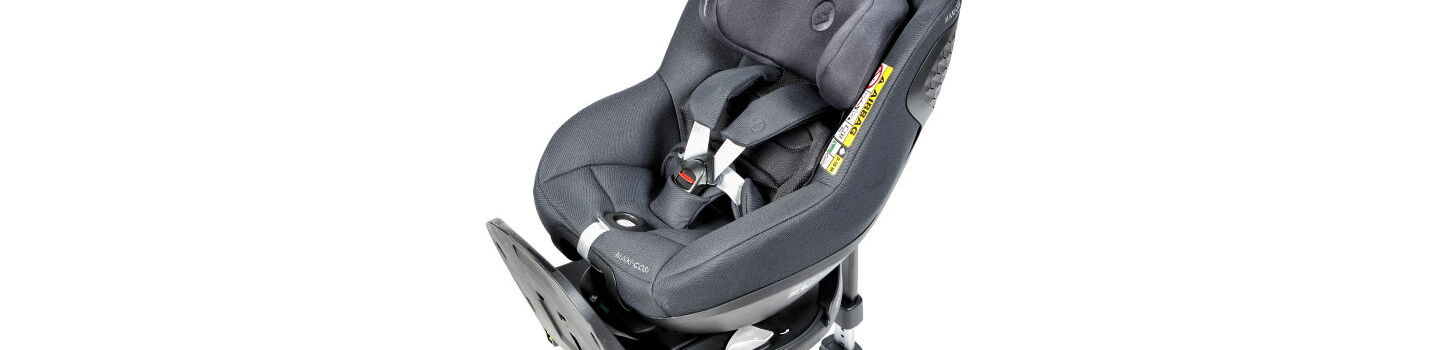 Sicherer Kindersitz, in dem Kinder bis etwa 4 Jahre entgegen der Fahrtrichtung angeschnallt werden können. Um den Einstieg zu erleichtern, kann der Sitz zur Seite gedreht werden.