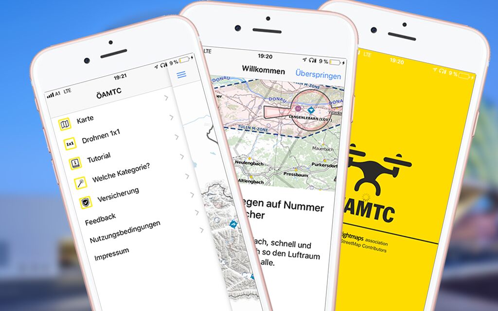 Mit der Drohnen-Info App gibt der ÖAMTC Drohnenpiloten mittels einer interaktiven Landkarte für jeden Standort Auskunft darüber, in welchen Gebieten Drohnen sicher und legal aufsteigen können und wo Einschränkungen und Verbote existieren, und bietet umfassende Informationen über geltende Regeln und Vorschriften im Luftraum.