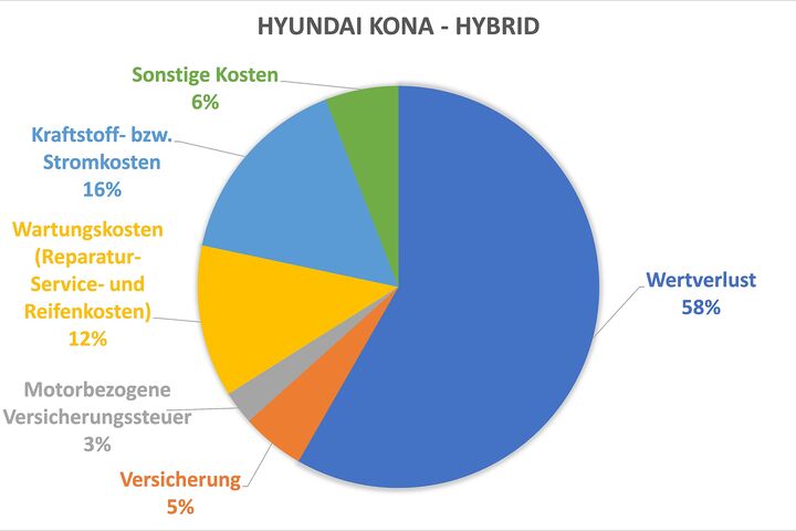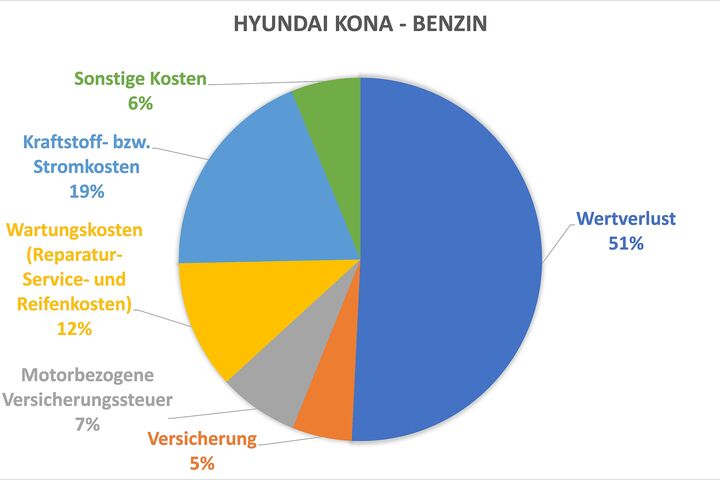 Gegenüberstellung der laufenden Kosten unterschiedlicher Antriebstechnologien am Beispiel des Hyundai Kona: Elektro – Benzin – Hybrid.