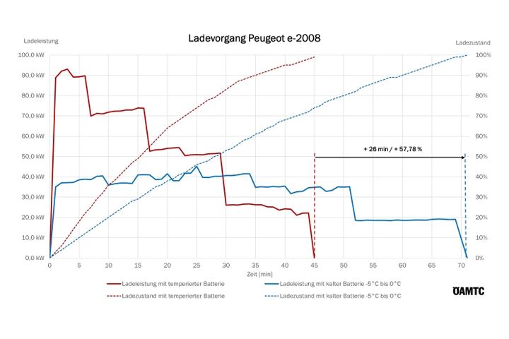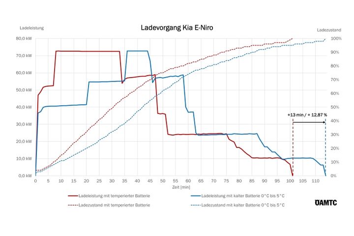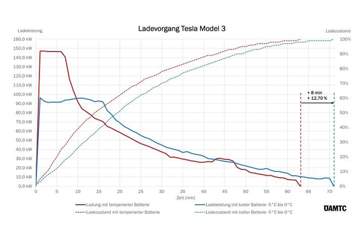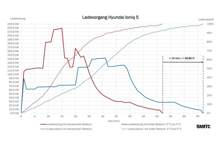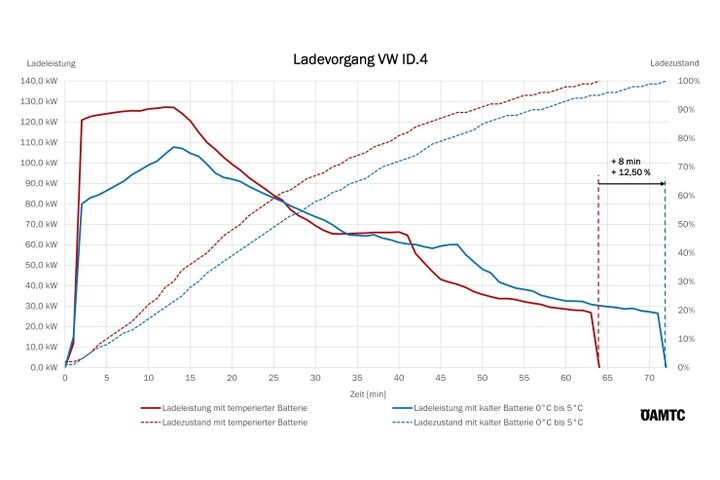 Neben der Aufladung über die oft genannte „80%-Ladezustandsmarke“, bei welcher bei den meisten Fahrzeugen ein erheblicher Leistungsabfall eintritt, ist vor allem die Temperatur ein entscheidender Faktor für die Ladeeigenschaften des Elektrofahrzeuges. Insbesondere tiefe Temperaturen in der Traktionsbatterie führen dazu, dass die Leistungsaufnahme des Fahrzeuges deutlich reduziert wird, was wiederum zu einer Ladezeiterhöhung führt. Tiefe Temperaturen in der Traktionsbatterie reduzieren aus Sicherheits- und Haltbarkeitsgründen die Leistungsaufnahmefähigkeit. Eine geringere Ladeleistung wirkt sich auf eine Erhöhung der Ladezeit aus. In Verbindung mit der Abrechnung nach Zeit erhöhen sich dadurch für den gleichen Ladevorgang die entstehenden Ladekosten.