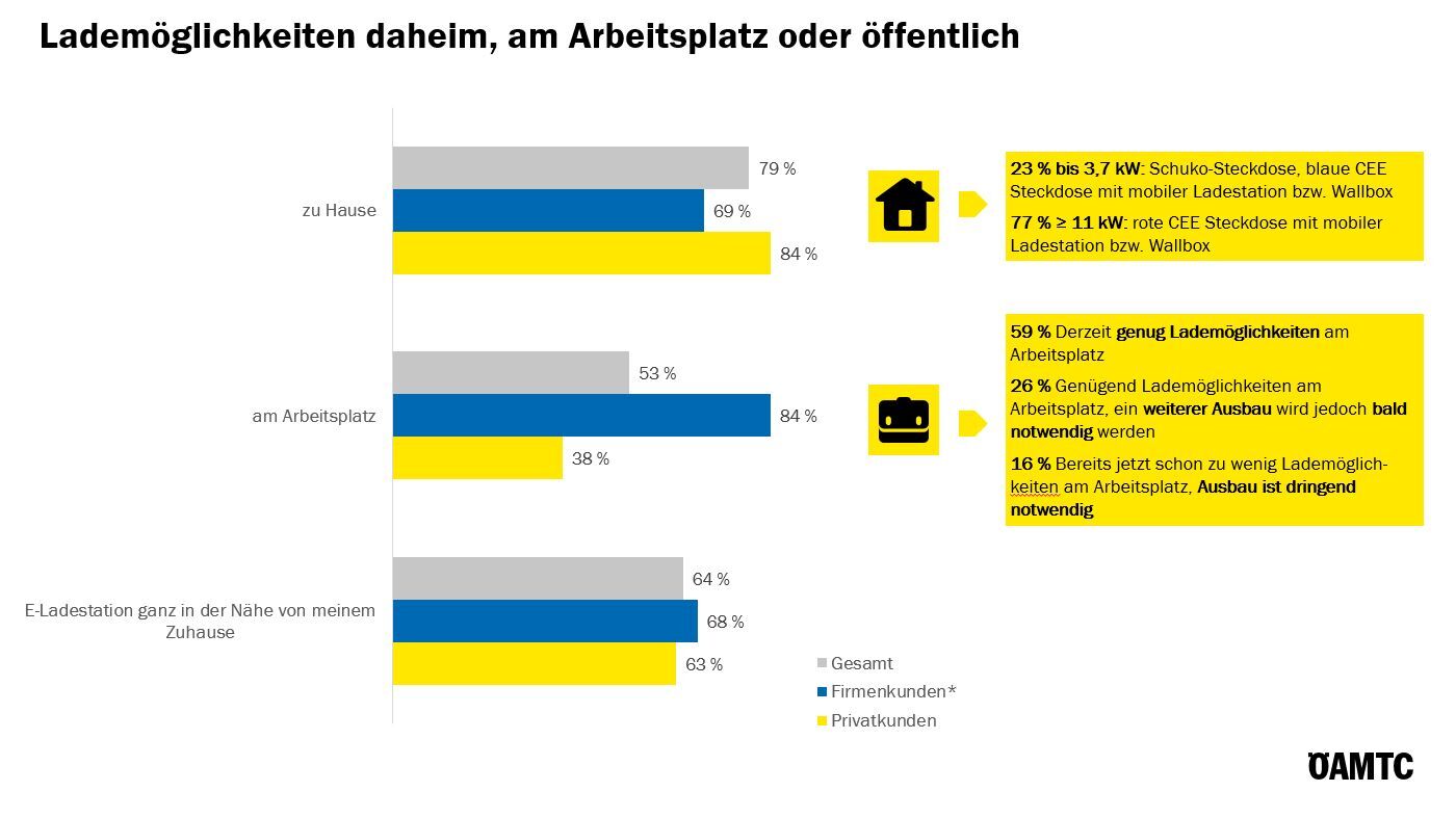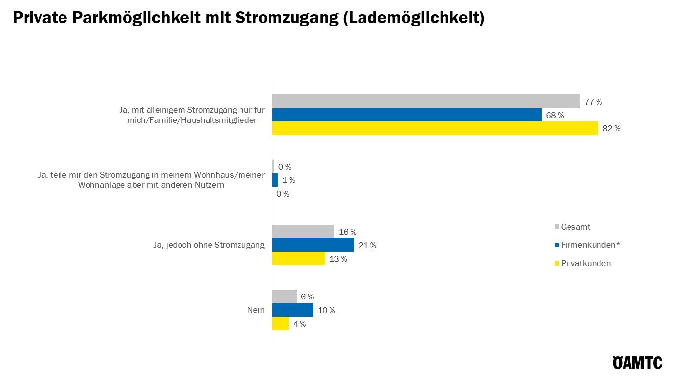 Ca. drei Viertel besitzen zu Hause einen eigenen Parkplatz mit alleinigem Stromzugang, Privatkunden etwas öfter.