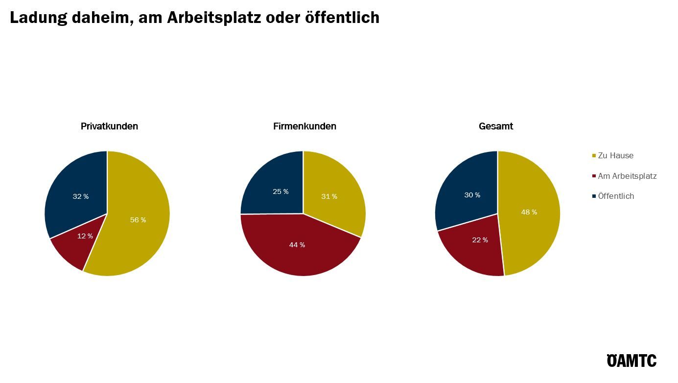 44 % der Firmenkunden laden am Arbeitsplatz, 56 % der Privatkunden zu Hause.
